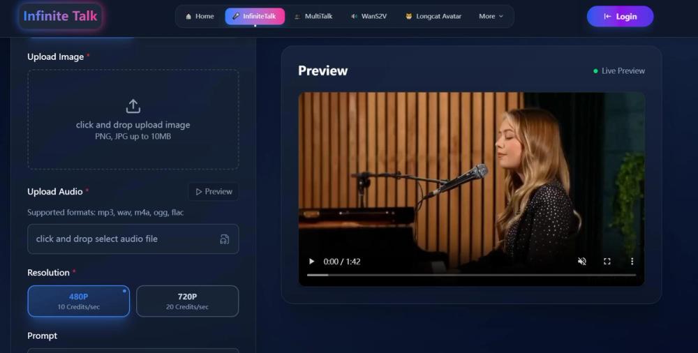 ∞ Unlimited-Length Generation Unlike other tools limited to short clips, InfiniteTalk AI supports continuous, long-form content creation. Generate videos of any duration with consistent quality.
